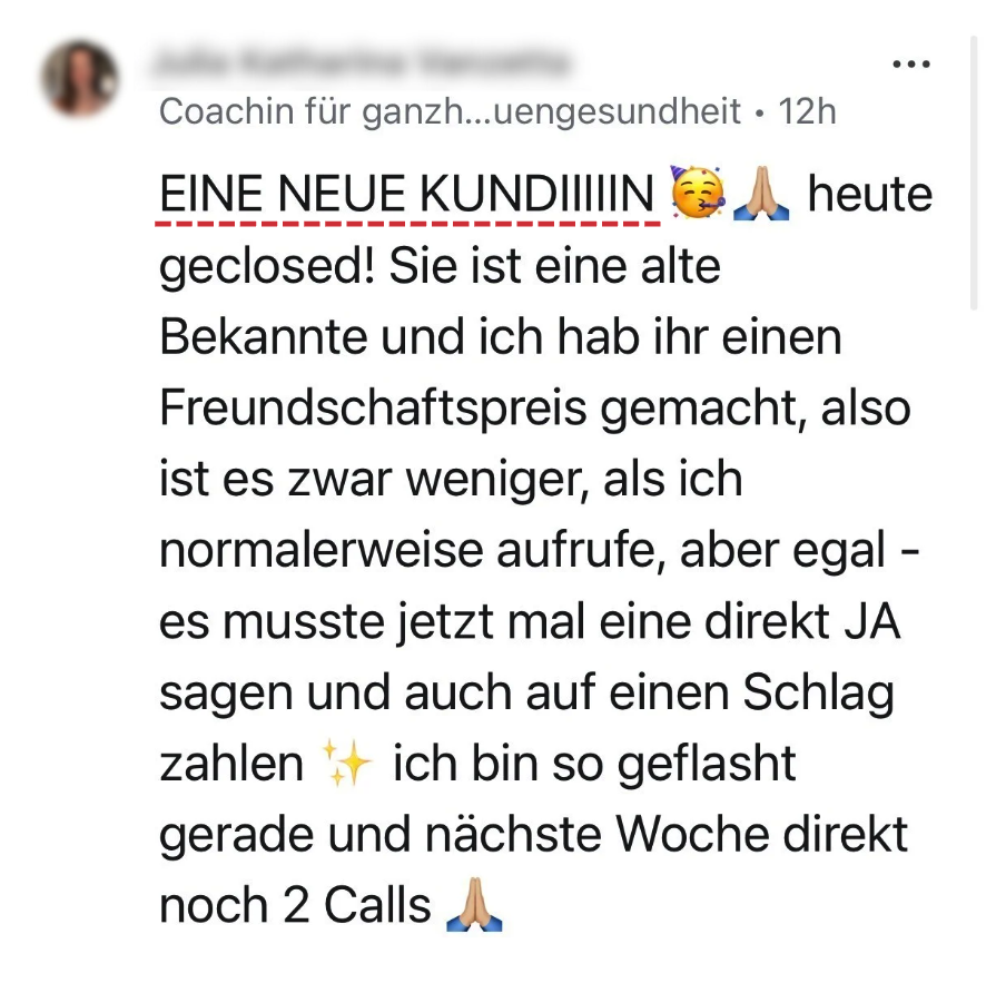 Daher findest du sie nicht nur in Kursen oder auf Bühnen, sondern wirklich dort, wo Veränderung passiert: im direkten Gespräch, im ehrlichen Feedback, in der Umsetzung mit ihren Kunden.