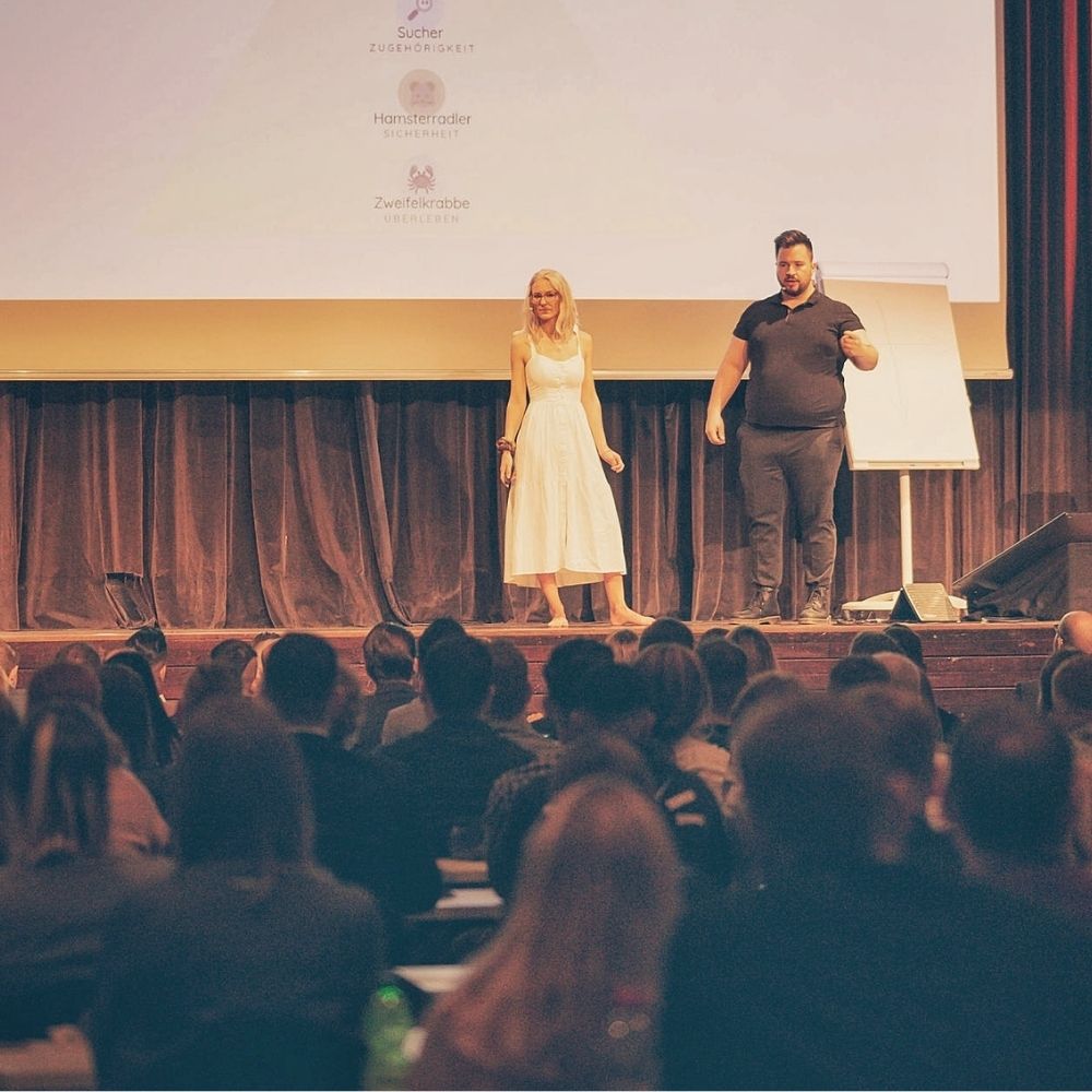 Laura ergänzt ihn seit 2016 durch ihre Tiefe, Empathie und Coaching Expertise. Gemeinsam haben sie in Coachings, Workshops und Live-Formaten über 20.000 Menschen begleitet.