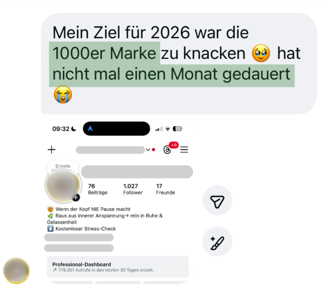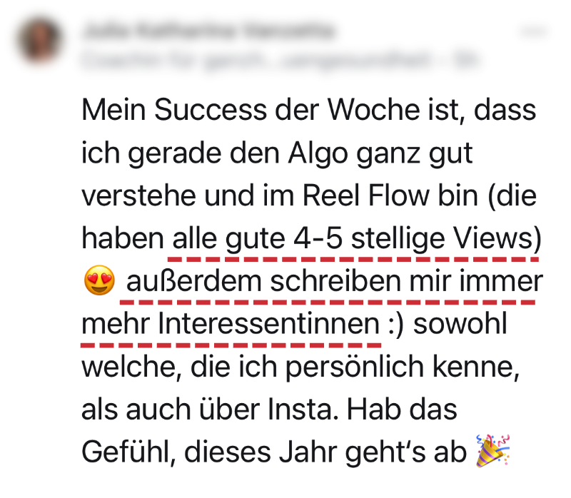 Wir erstellen mit dir gemeinsam deinen persönlichen Plan, individuell und auf dein Ziel ausgerichtet. Keine Module, keine KI-Antworten. Stattdessen ausführliche persönliche Analysen (z.B. zu deinem Instagram-Account).