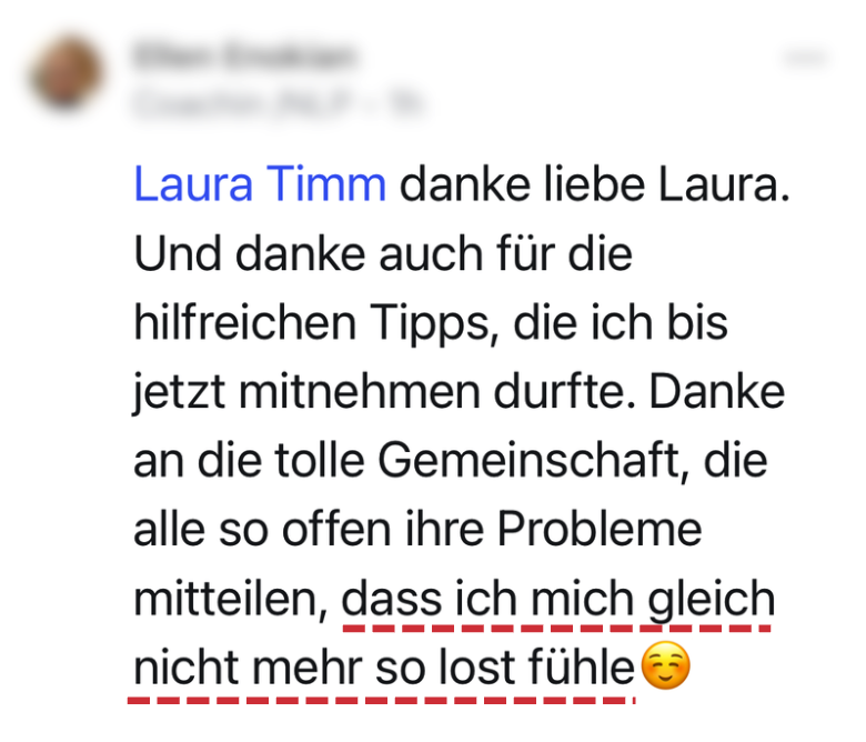 Egal wo du gerade stehst, Laura und Manuel sind mit ganzem Herzen dabei und helfen dir mit ihrem Fachwissen und jahrelanger Erfahrung immer weiter. Du hast nie das Gefühl allein zu sein – du kannst dir jederzeit Unterstützung holen – und das ist unschlagbar wertvoll! (…)
